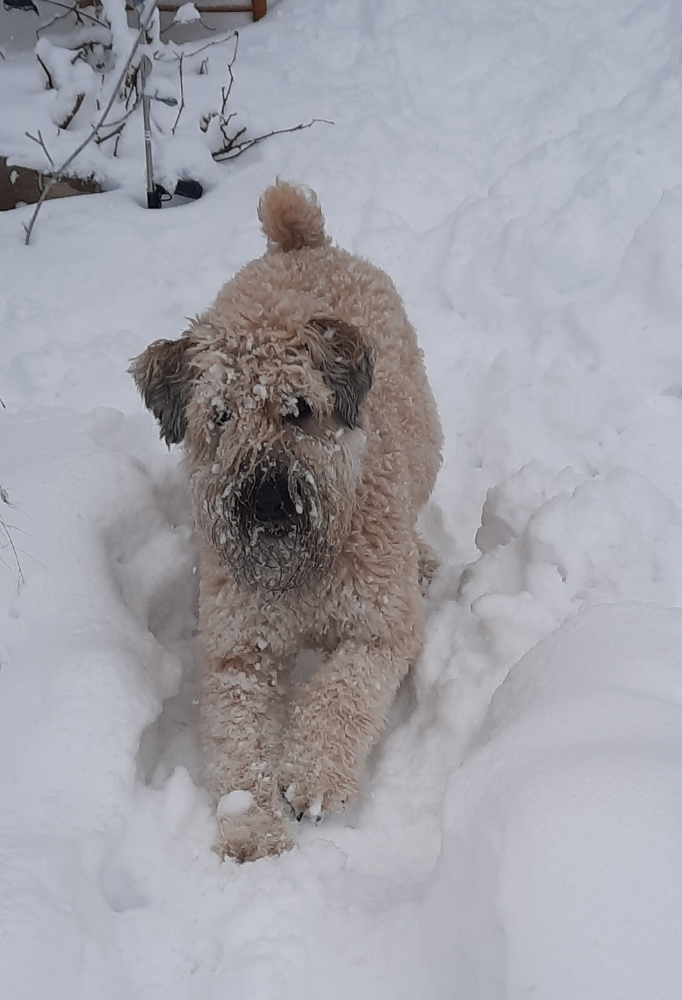 A Soft Coated Wheaton Terrier that goes and goes and goes