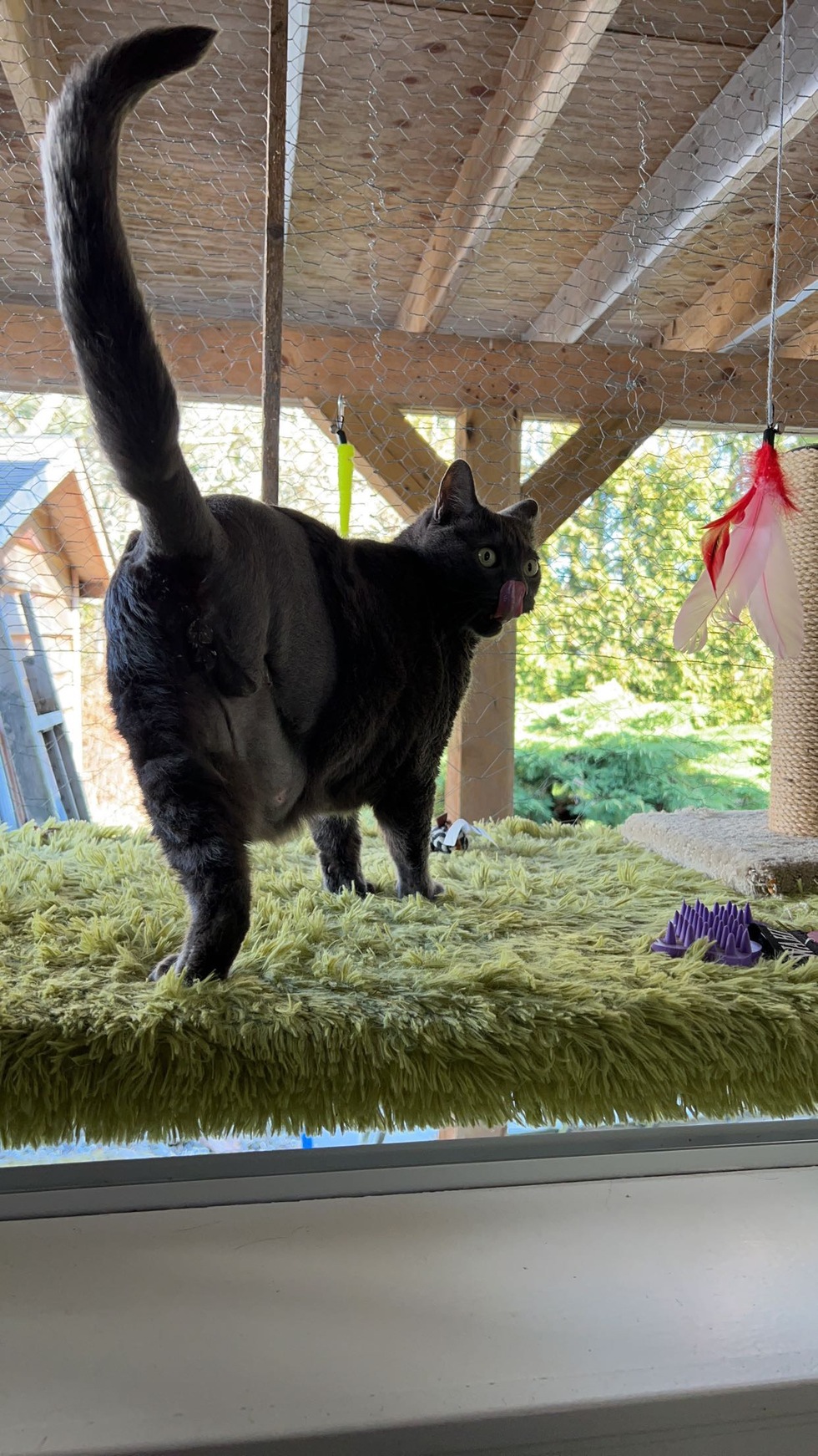 He had got the big C in the right rear leg at the end of January. Here we are April, the leg was amputated and he is ready for catio season!