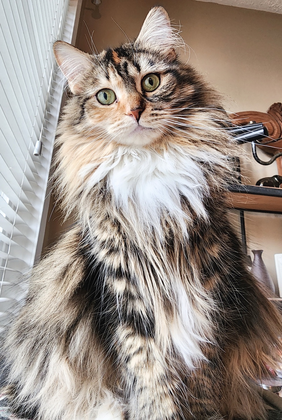 Abby is unique as her coloring! She is feisty, loves her nummies and is always most happy watching the birds outside. She is a treat of floof!!
