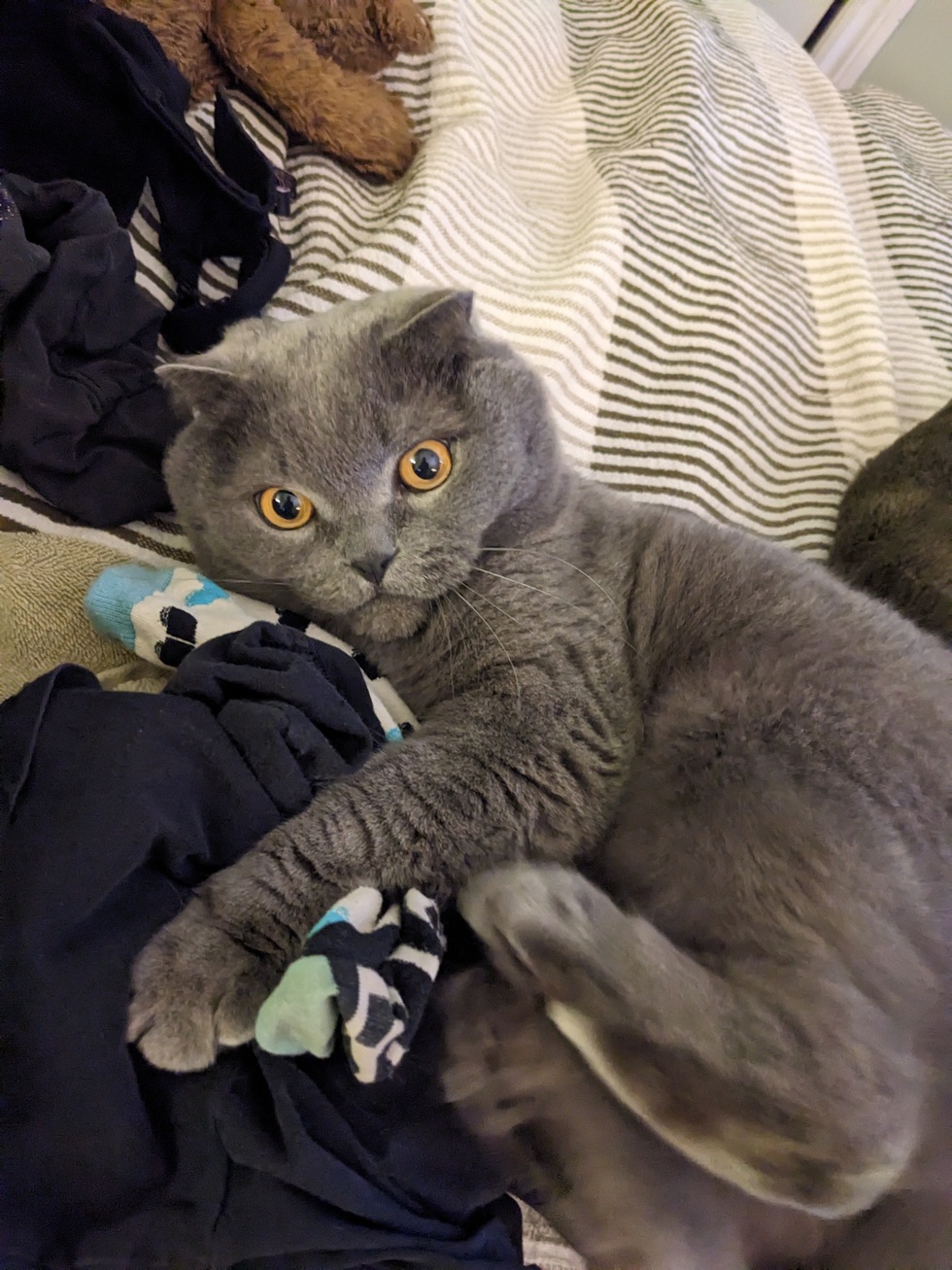 He plays a big game of being standoffish, but he is always present. If you're sleeping, he's there. If you're doing dishes, there. Laundry, there. Leave the room and close a door? Waiting and trilling
