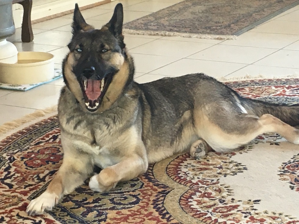 Why everyone should vote for my animalDaisy is a 2 year old rescue German Shepherd (with blue eyes of a husky) that had a rough start in life but now has found her forever home. She is my constant companion and is very much loved. She also loves having her picture taken as you can see. I don’t know whether she is laughing at me or yawning while listening to my stories.