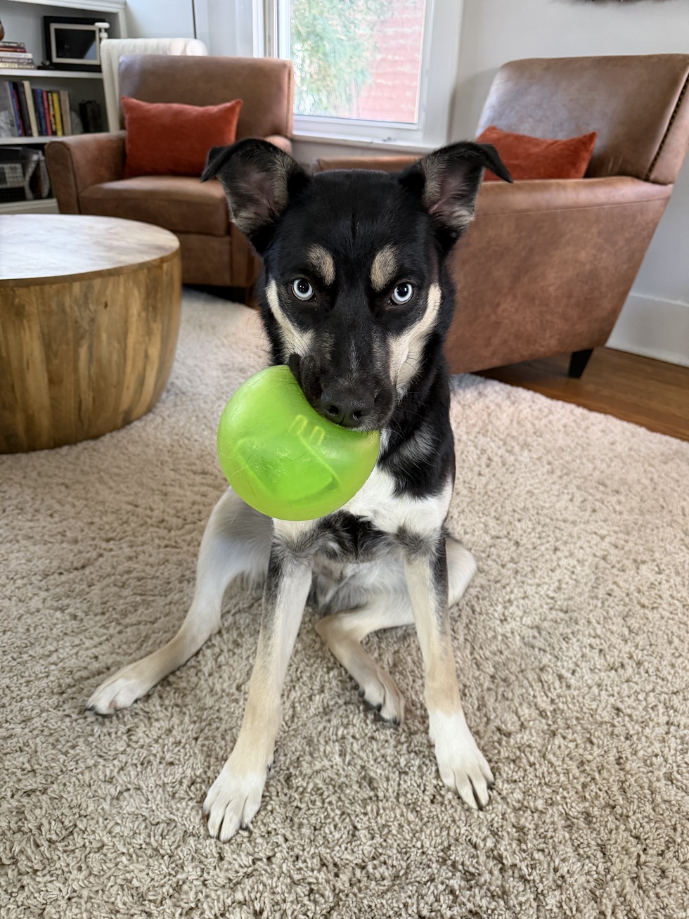 Blue was rescued from Lollipop farms in August. He loves long walks on the beach and getting caught in the rain.
