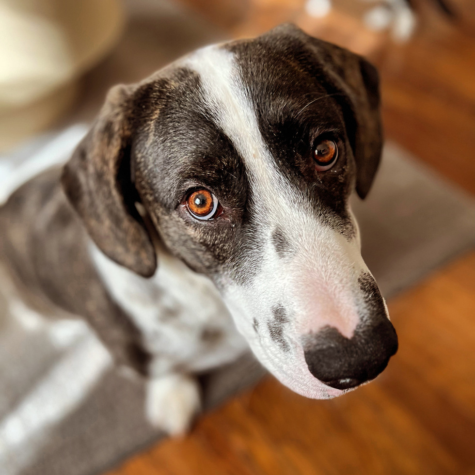 My Ma is a berserk redhead who busted me out of jail about 6 months ago. I have a cat brother now, and we have so much fun! I have so many bones and toys, and Ma calls me a “hot mess!” Whatever that is, I’m ok with it!