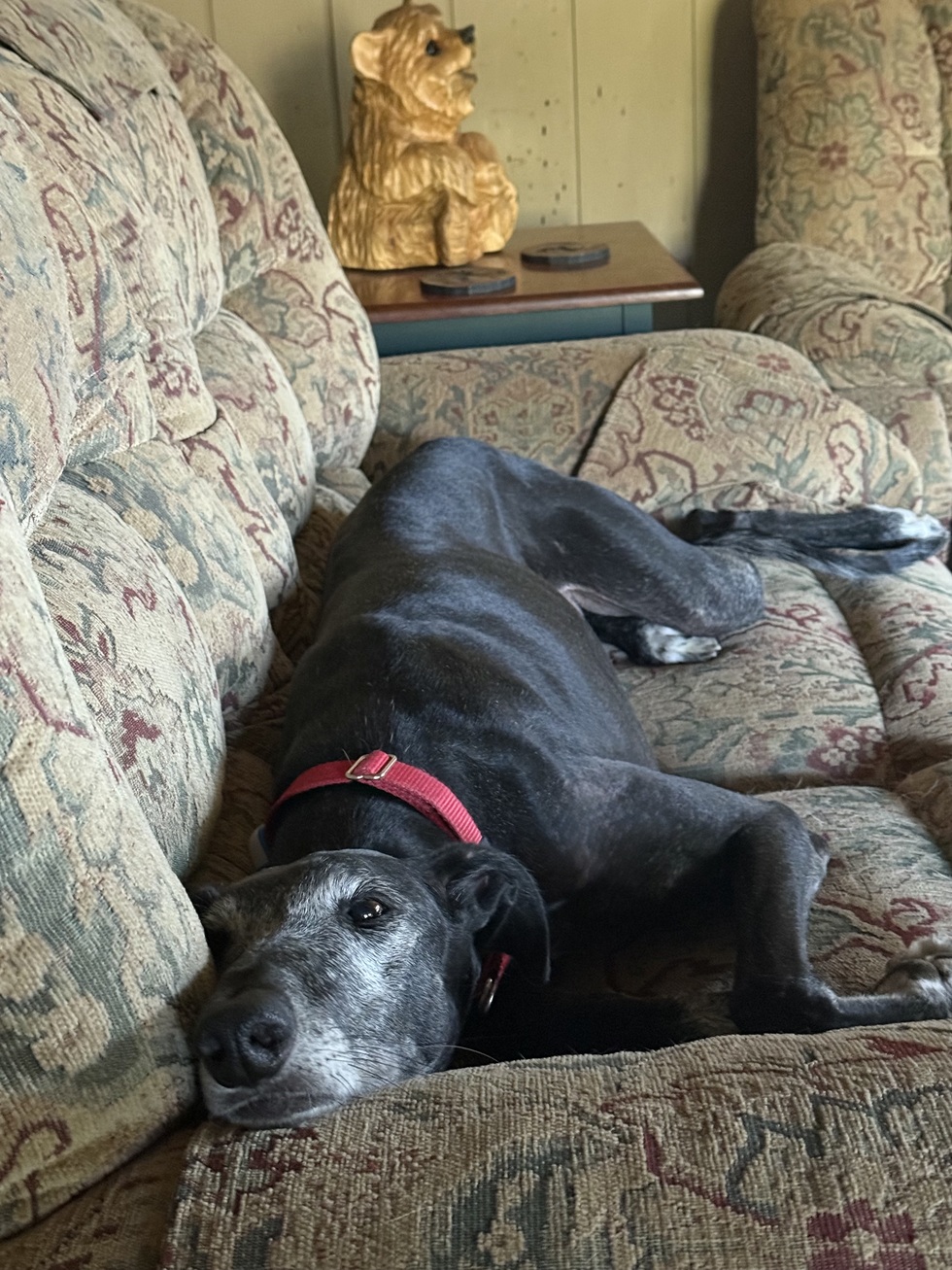 Tarmac joined our family from Galgos del Sol in January. He was a shy boy who quickly showed his playful side. He’s a sweet gentle giant who loves to cuddle and bounce around the yard with his pack.