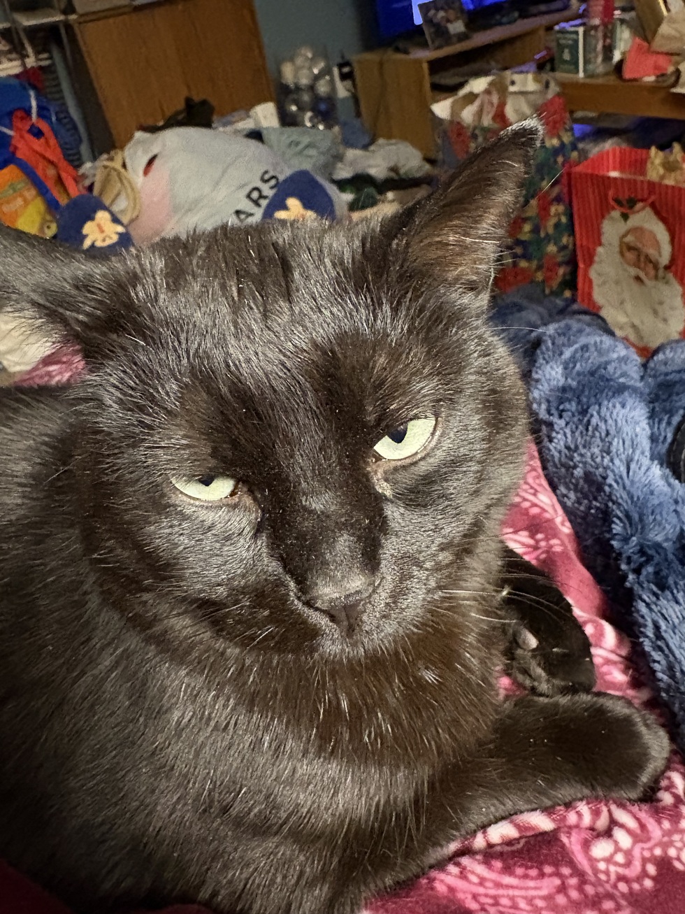 Hi! My name is Flynn, my momma adopted me from the whs four years ago, I love looking out the window, snuggling with my momma and playing with my sister Molly