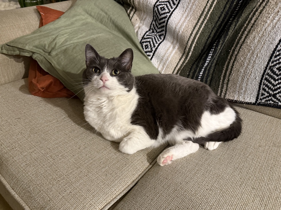 We adopted Olive when she was 5 from the Winnipeg humane society in November of 2024, she’s the sweetest cat, loves to chat and adores cuddles. She’s made our house a home.