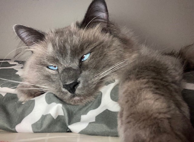 I adopted Merlin after I had to say goodbye to my first cat, Oliver, after 18 years. I said I was going to wait a year before I adopted again, but just 1 1/2 months later I saw baby Merlin at 5 months old and couldn't say no! He has been such a joy. Having a kitten after 18 years was an adjustment :) but he is pure entertainment. He's now about 2 1/2 and full of spunk and personality!
