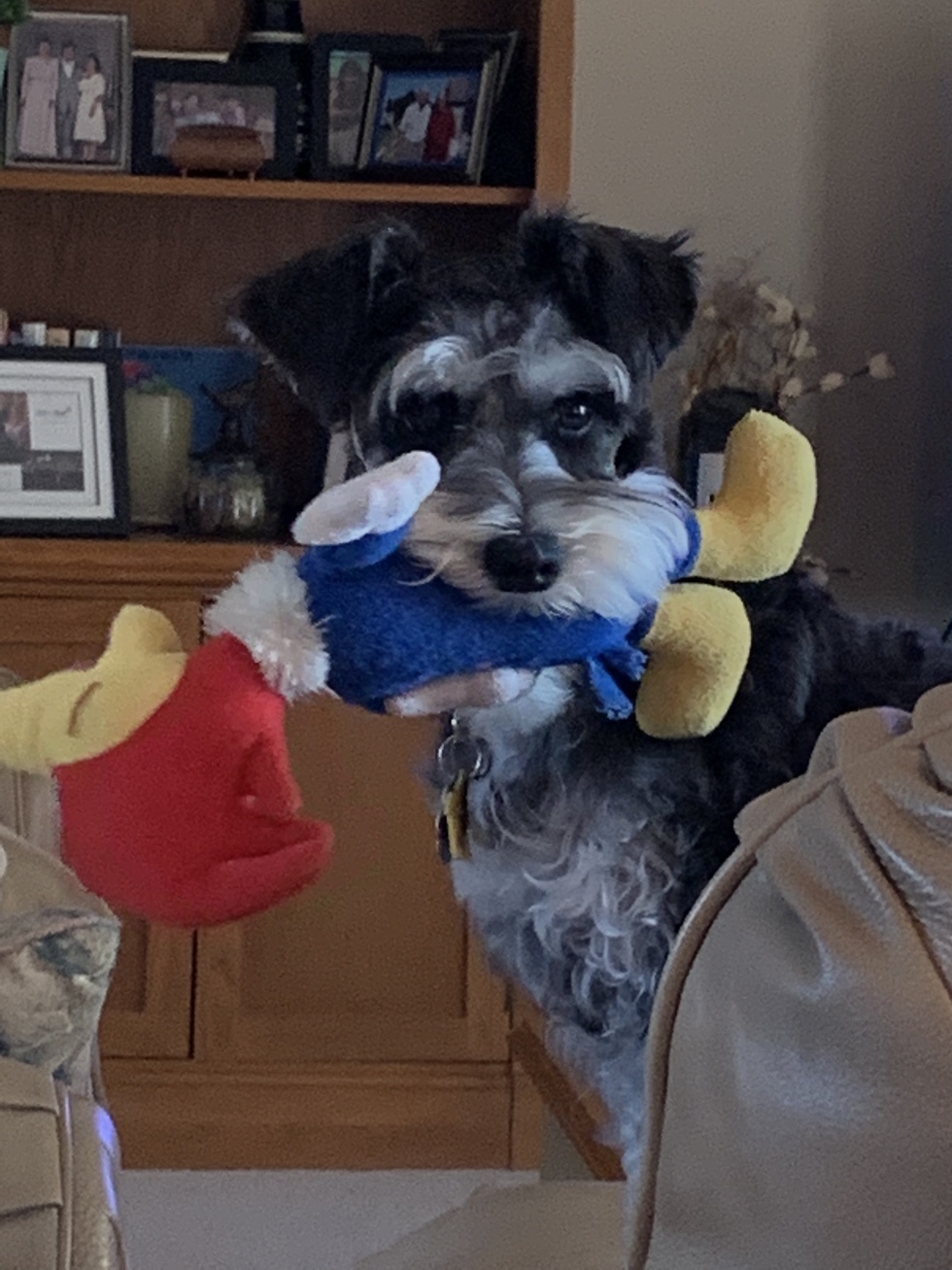 Hannah came to bring our family unbridled joy in January 2021. Our mini schnauzer Buddy was mourning the loss of our poodle and became lethargic. Enter Hannah Claire. What a special gift to all of us, this clever, smart, little comedian never fails to keep us laughing!
