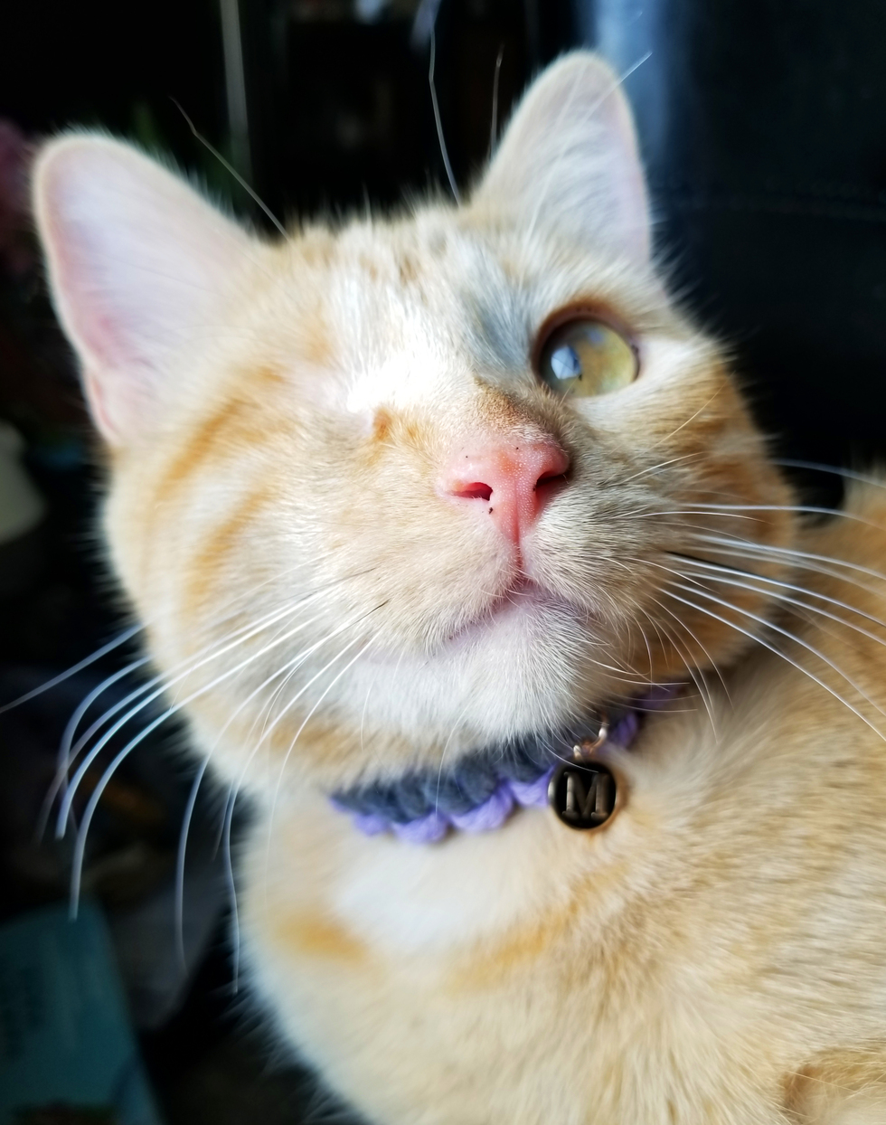 Marigold is a 1 year old yellow tabby. She lost one of her eyes due to an infection that she had when she lived on the street in the neighborhood. Her human mom rescued her and gave her the treatment that was necessary so that she won't end up losing both of her eyes. Nowadays, she's enjoying the time of her life with the other indoor cats. Whenever she hears any crinkle sounds from opening bags of treats, she will appear in the blink of an eye! She is the most friendliest cat out of the gang!