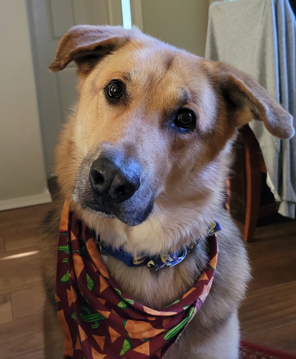 Mr. Eddy was adopted from the Animal Shelter side of the Humane Society. It was determined he was "too aggressive" to be put up for adoption. We adopted him, sight unseen, with 24 hours of him being euthanized. What a great dog Mr. Eddy is! He is a gentle giant at 120 pounds! He was 74 pounds when adopted. Love him so!