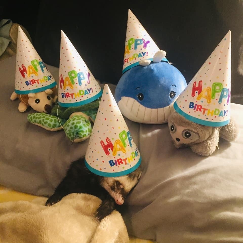 Ollie will be 3 April 1st, he’s the sweetest and happiest ferret ever and loves kisses and snuggles!!