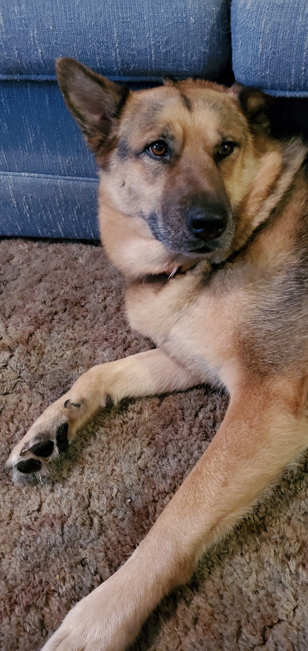 Molly,a 5 year old GSD, is a rescue dog that came to us from the owners son. The elderly lady went to a nursing home and the son didn't have the place set up for a dog. We have had Molly a year.