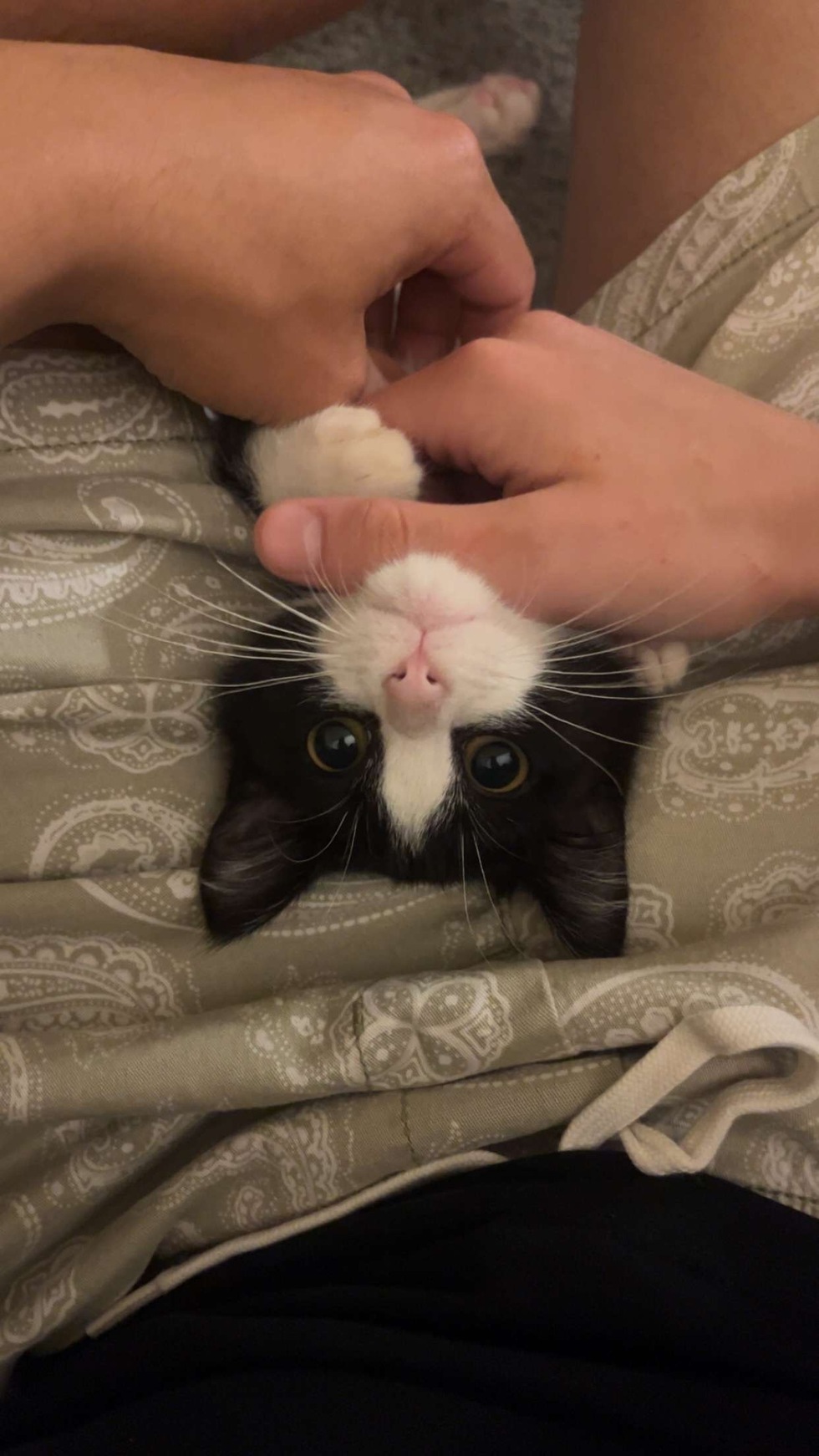 I met Tito at the Kansas Humane Society. When we first adopted him, he was sick with a kitty cold and slightly underweight. He had also gone under surgery a day before we adopted him. Despite all this, Tito was incredibly playful with us and we just knew how much of a joy he would be to have at home. He helped me get through the home sickness that I was having as I recently moved from Oklahoma. We related in that way, knowing that everything was new and scary, but we had each other so it was all going to be okay.
