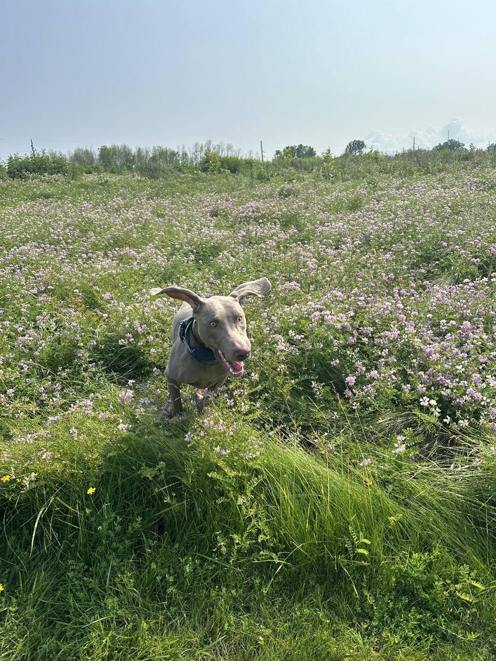 Remi was adopted as a puppy August 2023 and has been causing chaos ever since. His favorite place is the park where he gets to run around like the crazy boy he is, and sometimes those floppy ears help to give him a little extra air. When he's not being wild, you can find him on the couch, cuddled under a blanket.