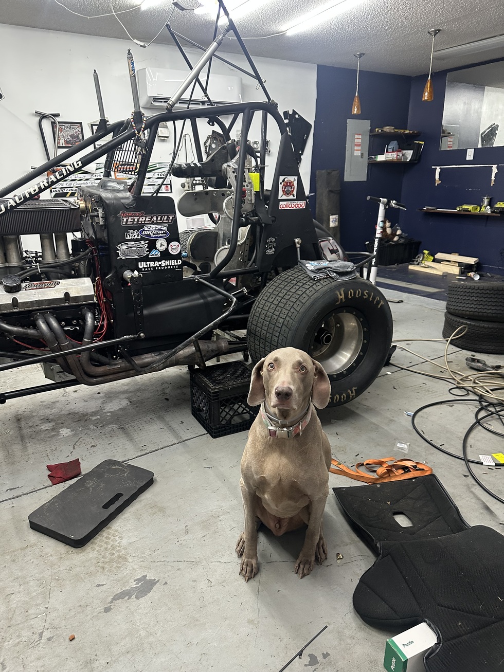 Zeus shop dog helping pick tires out! Zeus is a rescue from The Greyter Good rescue!