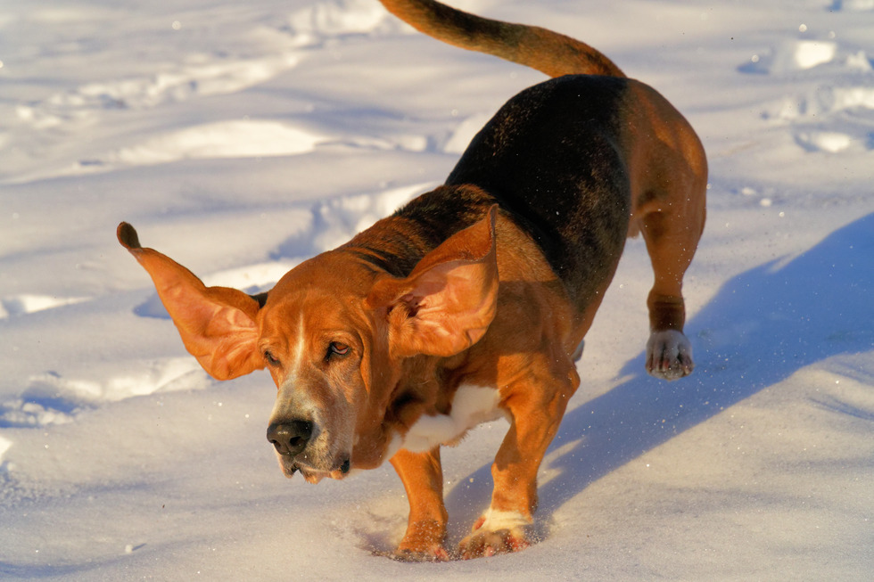 Basset Hounds - Active (at play, running/jumping, etc.)
