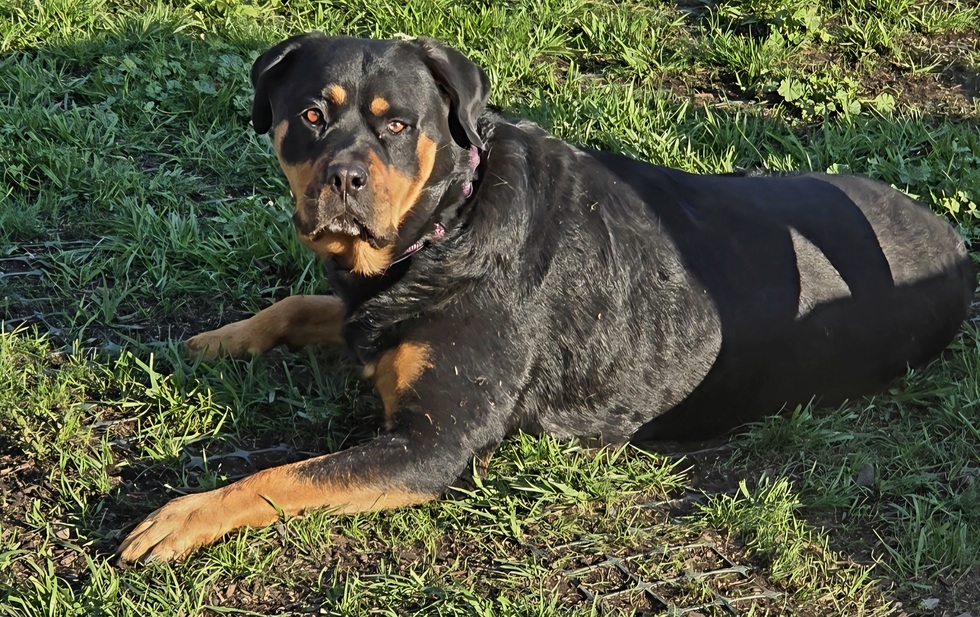 Mia is a 6-year-old gentle girl with a big heart. She’s an amazing foster sister to the shelter dogs that come through our home, welcoming them with kindness and helping them feel safe and loved. She might be big, but she's the sweetest thing around.