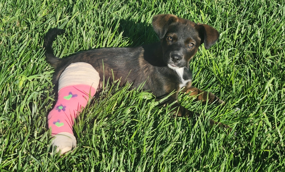 Kona came to YHS when she was just 8 weeks old after being hit by a car. She was a tiny 10-pound puppy with a badly broken leg. I had the chance to foster her through 10 weeks of vet visits and cast changes, and during that time, I completely fell in love with her. When she was finally healed and ready for adoption, I knew I couldn’t say goodbye, so I adopted her myself.