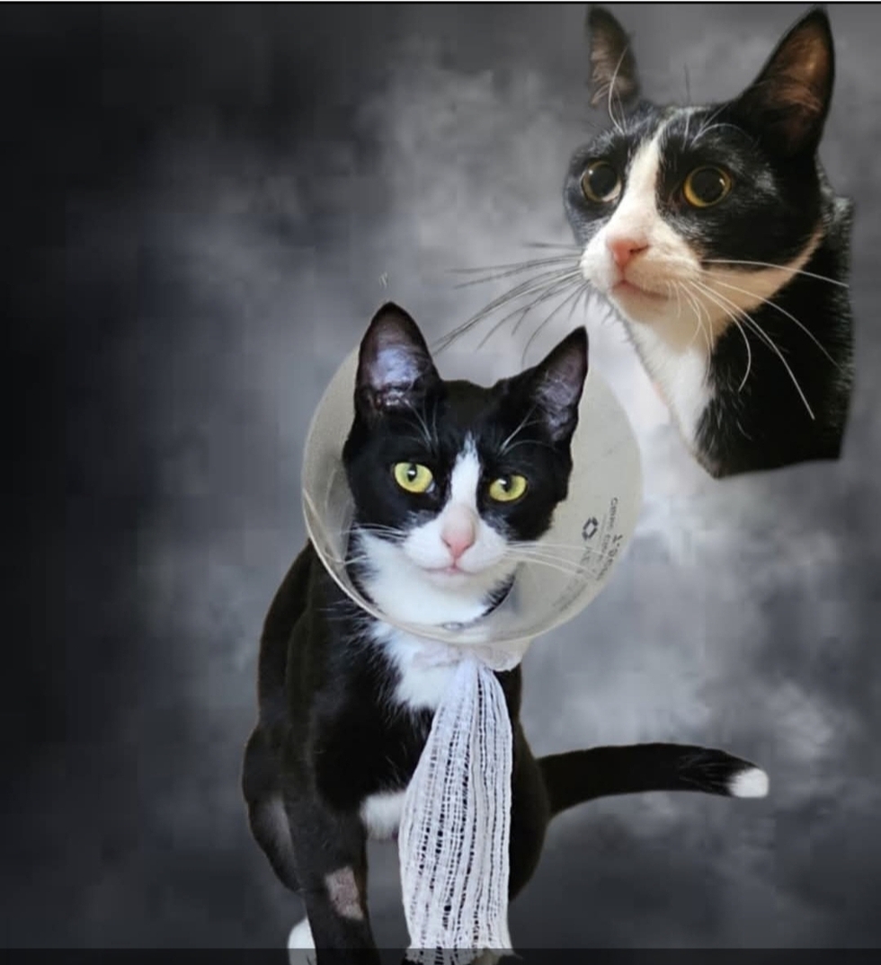 Marlin was rescued through The Underground Community Cat Rescue a year ago and was nursed back to health by her fosters. She soon became a foster fail with her 2 siblings. She is full grown and only weighs 6 lbs, but she runs the house. She loves the red dot laser pointer and laying in her watermelon bed.