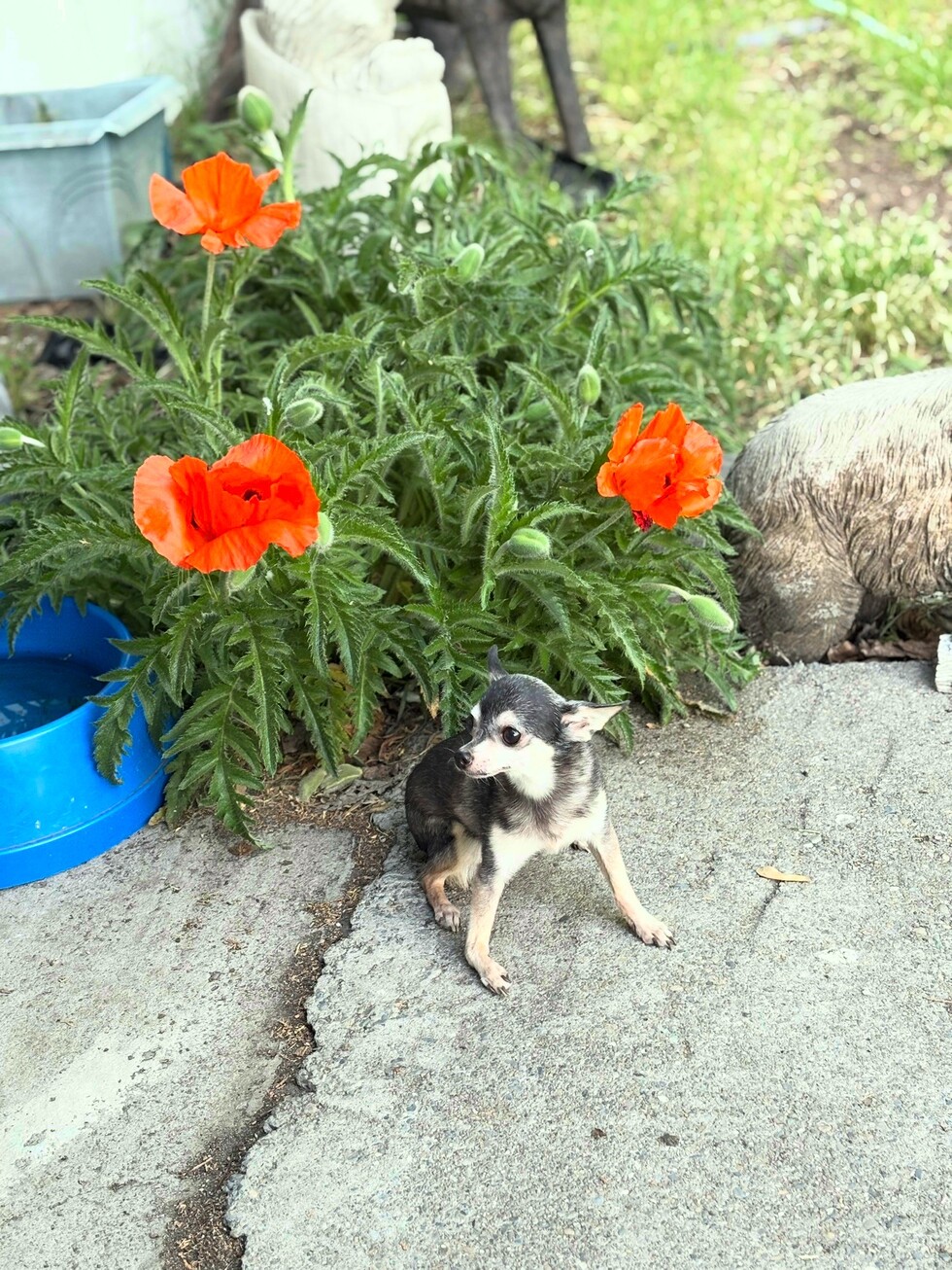 Rosie was born by a back yard breeder. She has two legs that are malformed (and opposite of each other) but she can hop along with the best of them! She is approximately 13 years old & knows she is the boss.